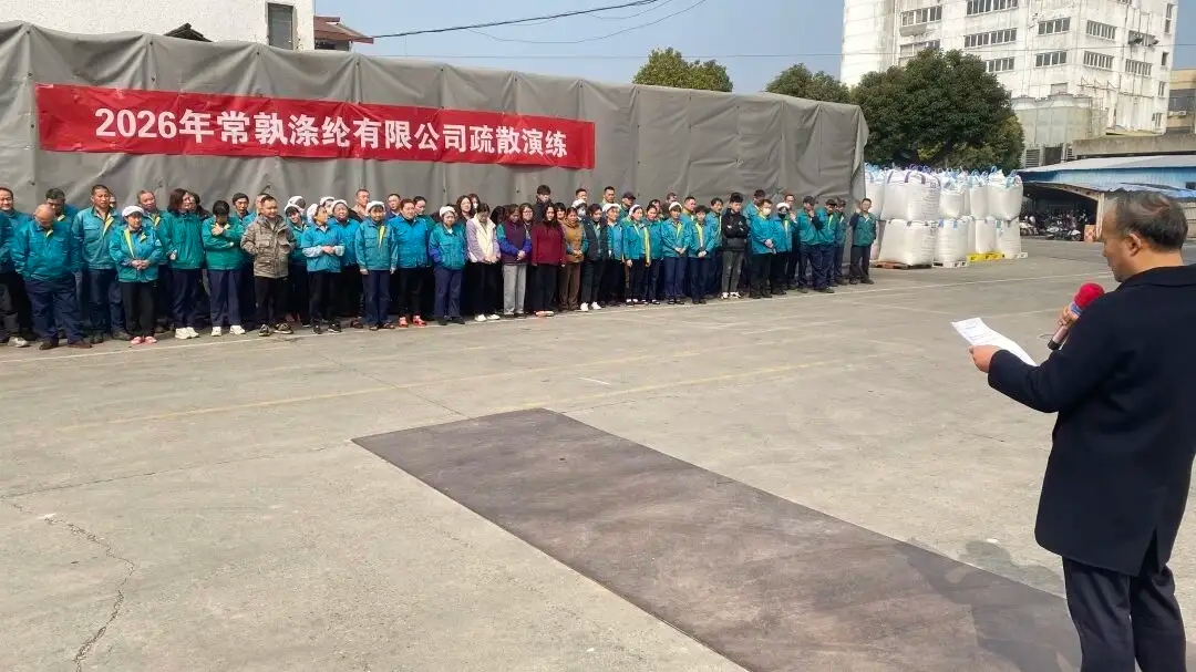 Προκειμένου να εφαρμοστούν οι σχετικές απαιτήσεις του νόμου περί παραγωγής ασφάλειας και της άσκησης έκτακτης ανάγκης για καταστάσεις έκτακτης ανάγκης και για να ενισχυθούν οι δυνατότητες εκκένωσης και διαφυγής των εργαζομένων σε περίπτωση πυρκαγιάς, η Changshu Polyester Co., Ltd. διοργάνωσε άσκηση εκκένωσης έκτακτης ανάγκης στις 11 Φεβρουαρίου. Η Διεύθυνση Πολυεστέρα και η Διεύθυνση Λήδας πραγματοποίησαν την άσκηση με τάξη στις 12:00 και 13:00 της ίδιας ημέρας, με συνολικά 357 εργαζόμενους και από τα δύο τμήματα να συμμετάσχουν στην άσκηση.